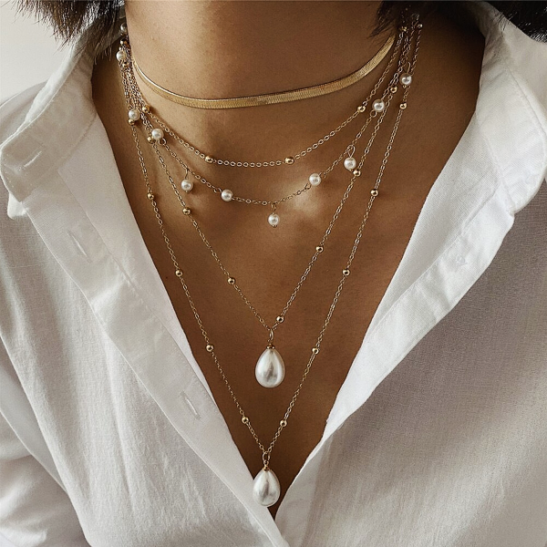Sparkly Crescent Layered Necklace - Stainless Steel